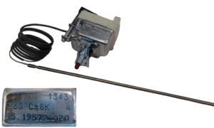 Этот термостат служит для аварийного отключения нагрева при достижении критической температуры 360°C, обеспечивая защиту печи от перегрева и возможных повреждений. Является важным элементом системы безопасности профессиональных конвекционных печей Smeg Alfa.